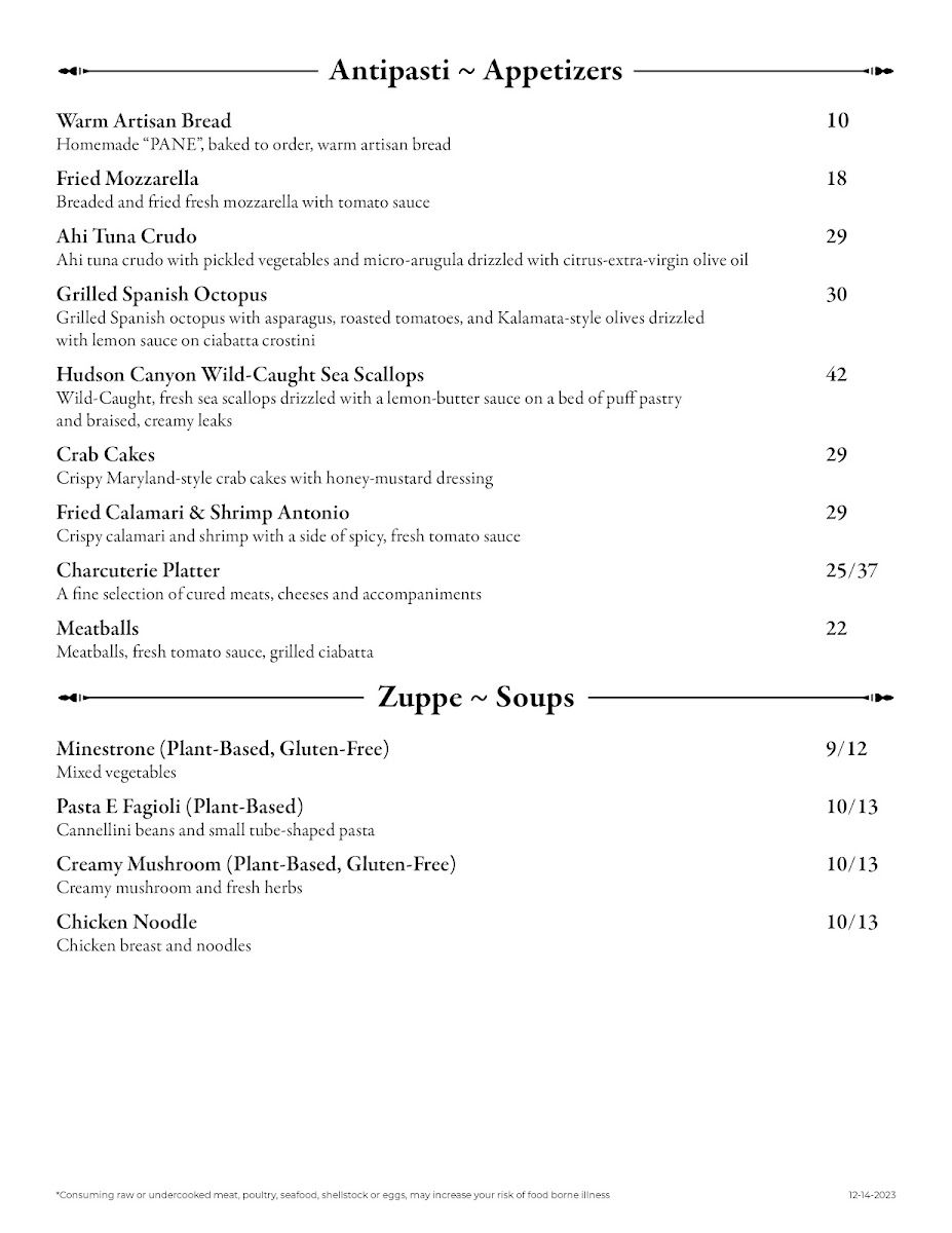 Start your meal with refreshing salads like the Calamari or the Heirloom Cherry Tomato Panzanella. For mains, savor the luscious Chicken Parmigiana or the comforting Meat Lasagna, each dish crafted with fresh ingredients that evoke the warmth of Italian home cooking.