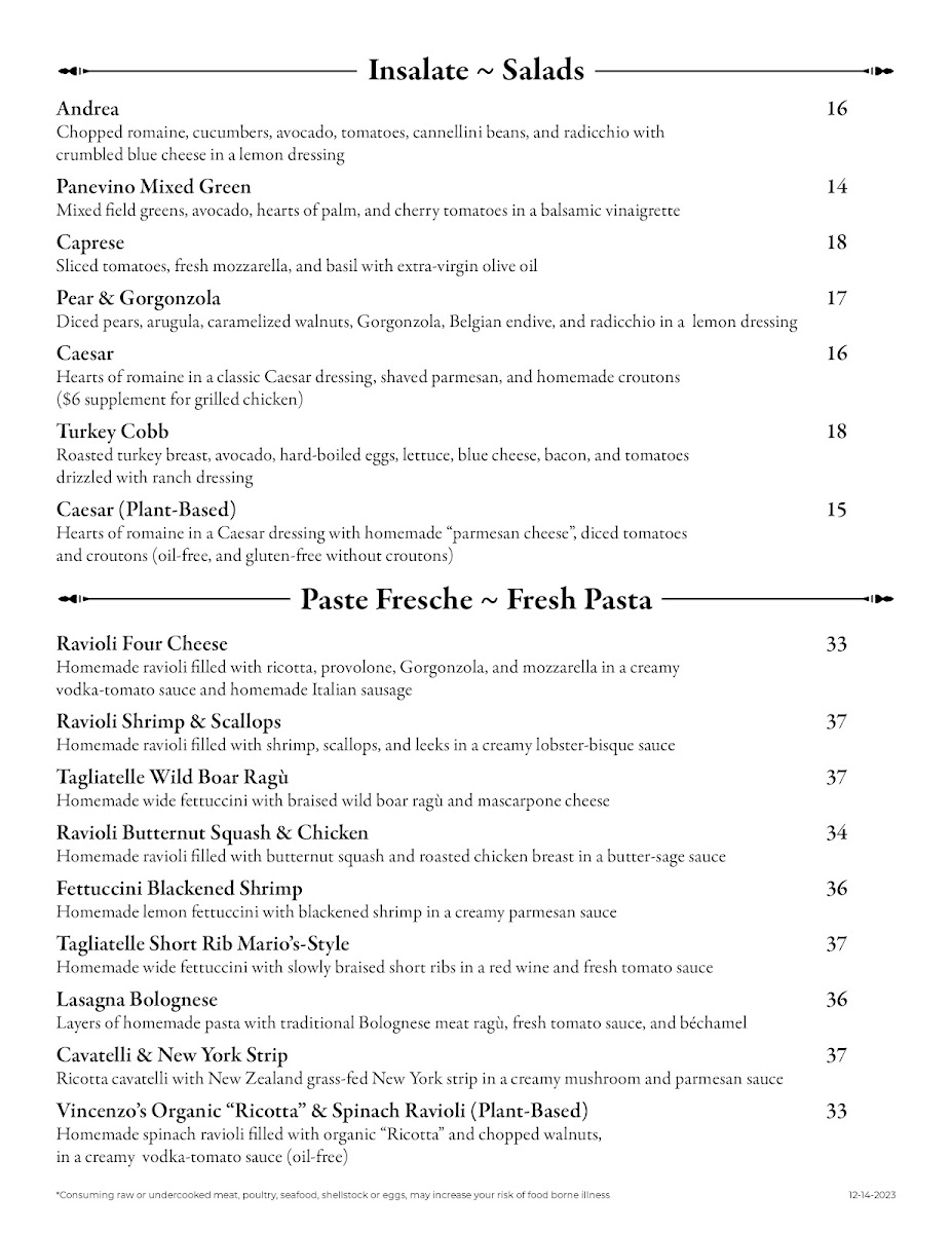Lunch & Dinner - Pasta Fresca & Pasta Secca